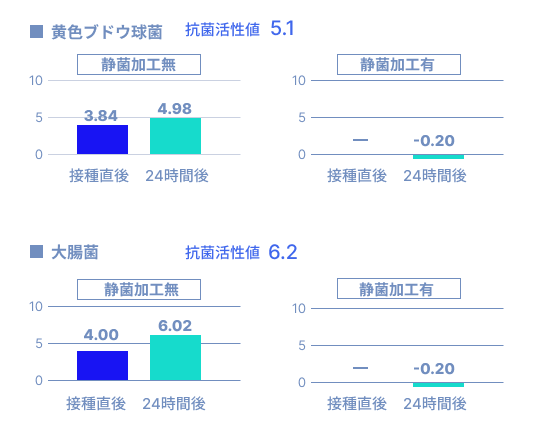 静菌AD-PSJ(アドックス粒子)は混和材料内での分散性が保たれています。 通常の酸化亜鉛粉末では均一に混ざりにくい特性があります。 静菌AD-PSJはこの課題を解決し、成果物全体にわたって均一な抗菌効果を発揮することができます。